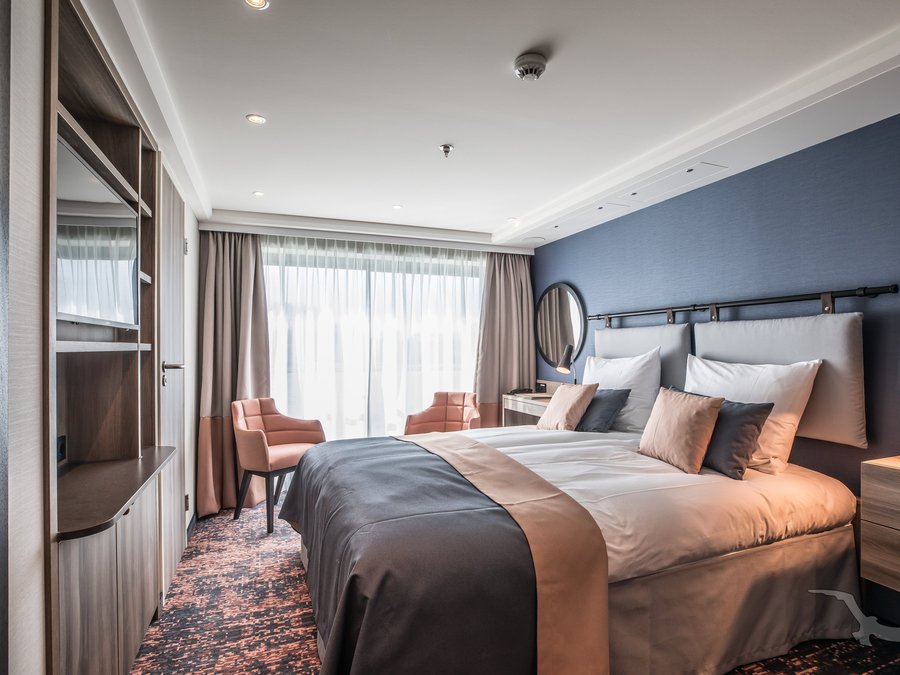 Die großen Kabinen, überwiegend mit französischem Balkon, laden zum Entspannen und Erholen ein. Die schicken Räumlichkeiten sind lichtdurchflutet, stilvoll aber nicht überladen eingerichtet und bieten ein angenehmes Ambiente.